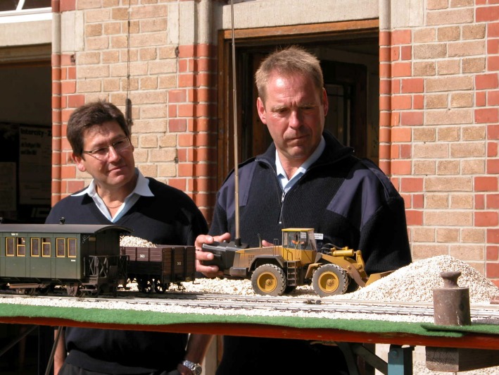 Harald Hofbauer guckt zwar noch etwas skeptisch - aber dank der Aufmunterung durch den Vorsitzenden der HMB, Werner Kuhn, klappt's nun gut mit dem Radlader.