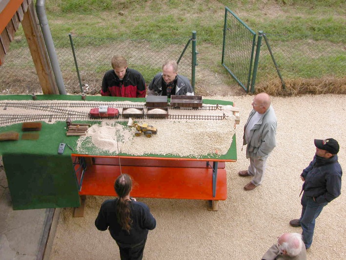 fido belädt die Wagen bis zur Grenzlast. Rechts im Bild hinter den Prellböcken die Ts5-Sicherung mit etwa zwei Dutzend Spax®.