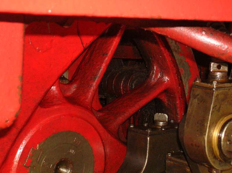 Harzgerode, 24.10.04 Hier (das ist die Treibachse) sieht man ziemlich eindeutig eine Verbindung zwischen Federspannschraube und einem Ausgleichshebel (mit der zweiten Kuppelachse).