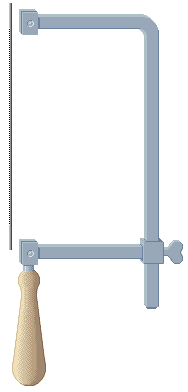 Die Zeichnung eines typischen, verstellbaren Juwelier-Sägebogens.