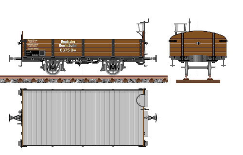 Ehemals bayerischer Hochbordwagen mit 2,7 m Achsstand und abklappbaren Seitenwänden.