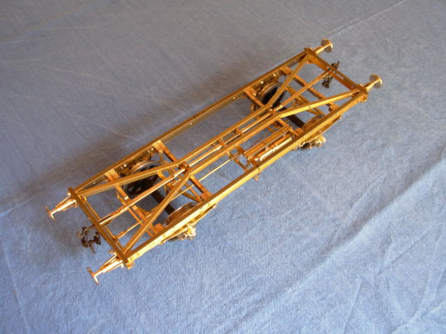 1. Baustufe: Ansicht von oben, Trägerrahmen, Radaufhängung, Korbpuffer, Querträger, Kupplungsdurchgangsverbindung, Kupplungen