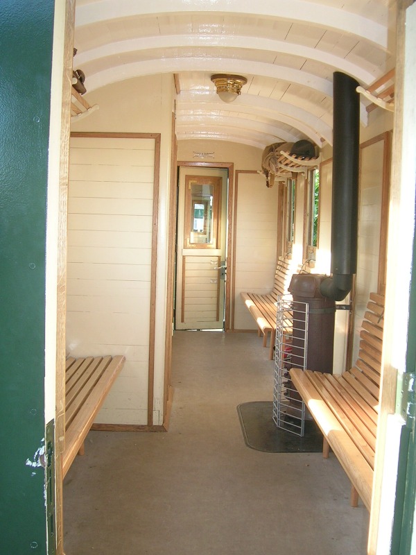 Die Inneneinrichtung eines der "Smoschewer" Wagen des FFM. So eine freundliche Atmosphäre... Und im Winter ist der Wagen dank des Kanonenofens bestimmt recht gemütlich. Wer nahe sitzt, glüht, wer fern sitzt, friert <grins>.