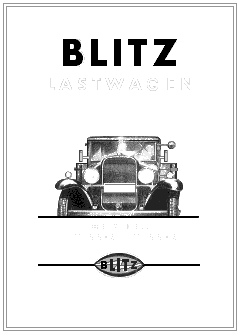 In Graustufen nachgearbeitetes Deckblatt eines Opel Blitz-2 Tonner-Prospekts (Quelle der Vorlage: Adam Opel AG).