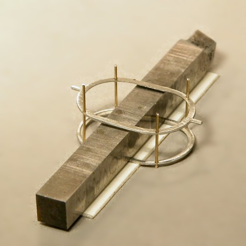 Anbringung der Pass-Stifte an den Führerhaus-Fensterrahmen-Hälften mit Abstandshaltern zur Ausrichtung.