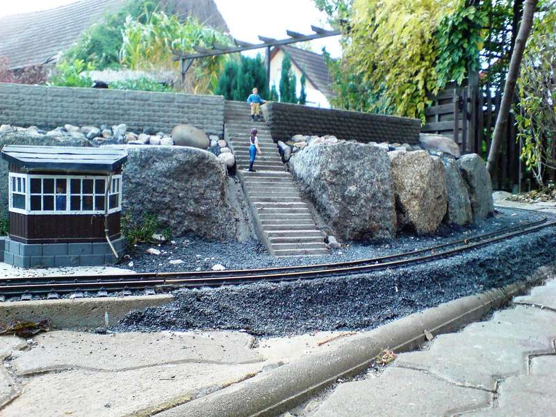 Es kommt sowohl an die Treppe als auch auf die Mauer noch ein Geländer.
