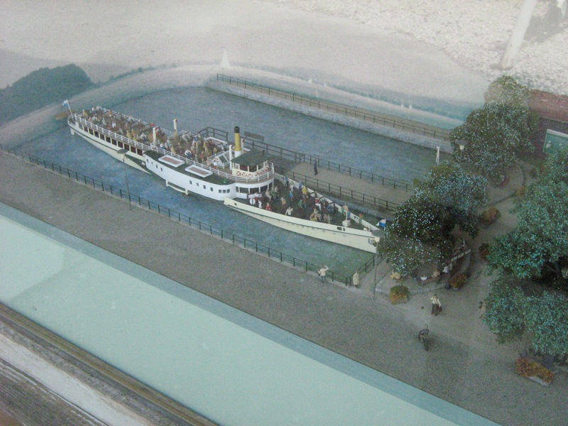 HOm-Modell des Schiffsanlegers in Prien-Stock mit altem Raddampfer