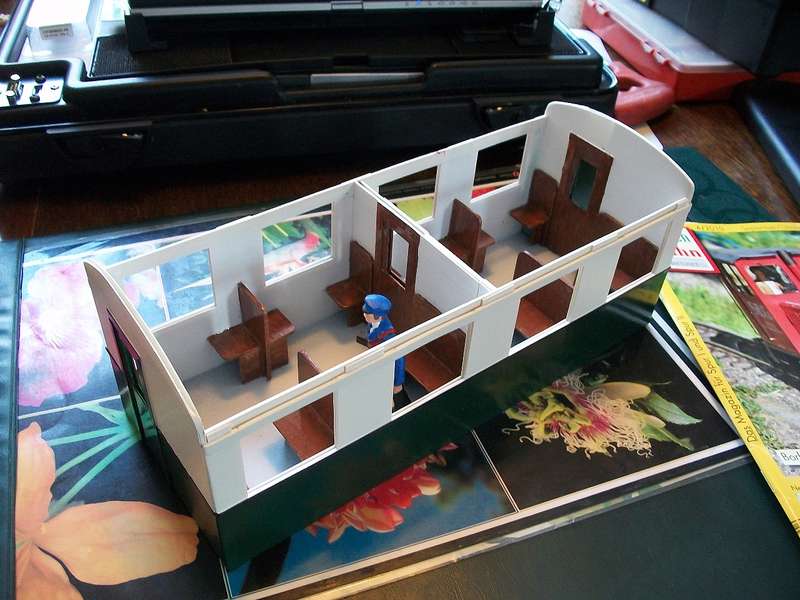 Heute mal versucht die Bänke zu lackieren, ich hatte eine Büchse mit braune Lokomotiv Lack (früher würden NS DE Loks "Güterwagenbraun" lackiert). Offenbar war diese Lack besser für Spritzen als Pinseln.