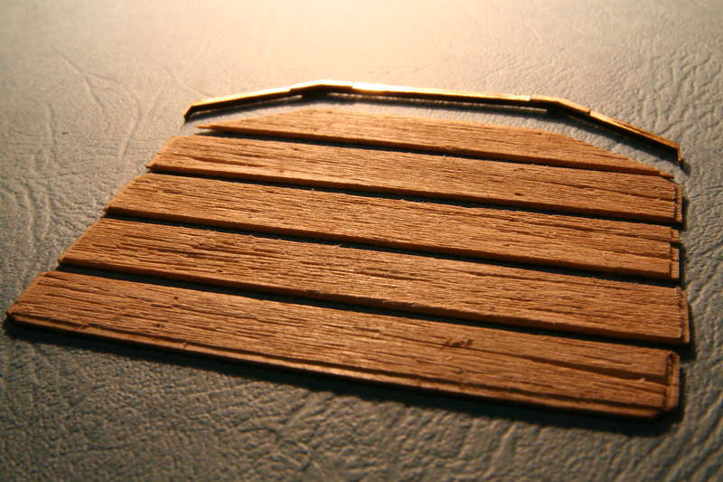 vorbereitete Bretter der ersten Stirnwand mit oberer Abschlussleiste