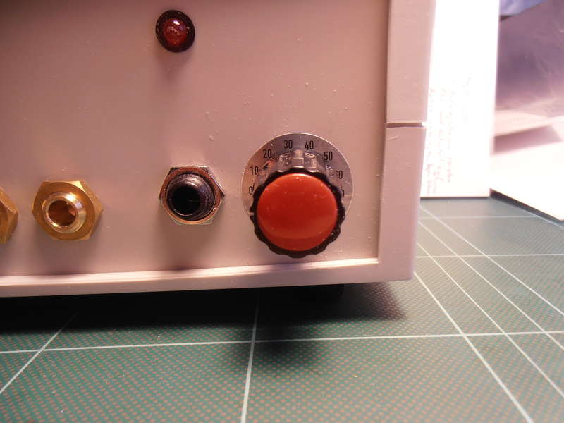Aufgeklebte Skalenfolie ist mit d=26mm etwas knapp. Verdeckt aber die Operationsnarbe von der Poti-Versetzung.