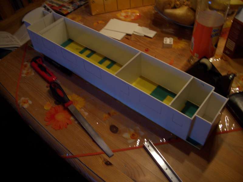 Zur Überprüfung, ob die Seitenteile passen. Fixiert wurde nur mit Klebeband.