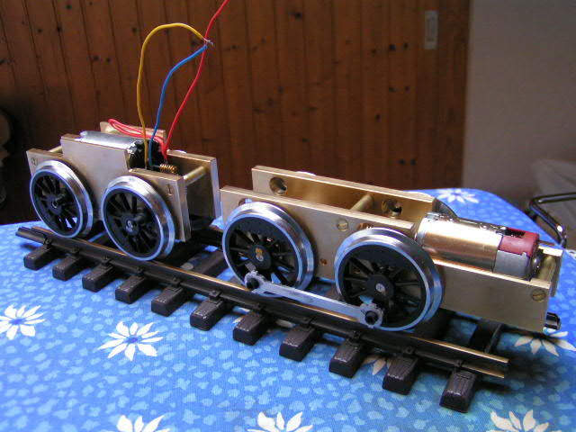 beide Antriebsrahmen für 995906. Aus 6mm Ms gefräst. Motoren, Zahnräder, etc. von Lehmann.