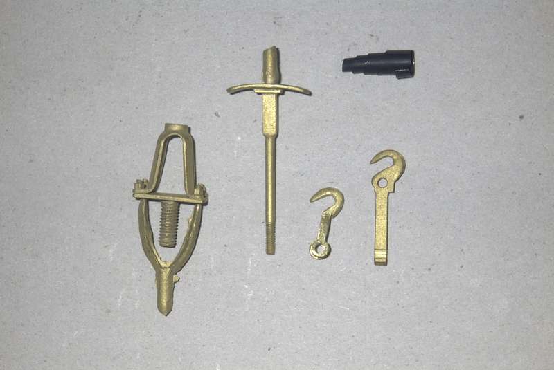 So sehen die Gußteile aus, die Haken schon verputzt, und die Feder.