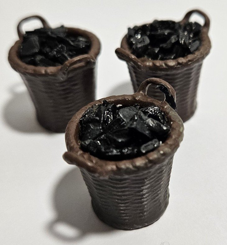 Hallo Robert, schöne Kohlekörbe aus Weißmetall, lackiert, gab es mal von Herrn Egon Neumann (Fa. Wimmer Zinnmodelle), unter der Artikelnr. 137. Waren drei Stück in der Packung. Ab und zu tauchen welche auf Online-auktionen auf.