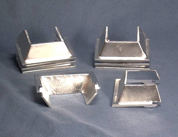 Damit man in der Kurve nicht zwischen Lokkasten und Vorbauten den freien Durchblick hat, habe ich ein paar simple Teile als Sichtschutz konstruiert, die sich innerhalb der Vorbauten befinden werden, aber am Hauptrahmen befestigt sind. Wie gesagt, die Teile selbst sind simpel. :? Trotzdem habe ich lange darüber gegrübelt, wie ich sie ausführen sollte. :gruebel: Eine direkte Verbindung mit dem Lokkasten kam nicht in Frage, da ich die Gehäuse nach oben abnehmen möchte, ohne die Vorbauten loszumachen. Die Lösung: die Dinger werden einfach auf den Hauptrahmen aufgesteckt, das Gehäuse kommt von oben drüber und klemmt die Teile fest. Ääääääh ... verstanden ??? Wenn nicht, ist es auch nicht so schlimm ..... ist ja nur ein Detail. :wink:
