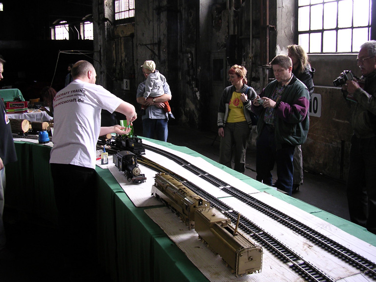 Nach den Erfahrungen habe ich die 2 Vollkreise mit 6m Durchmesser als mobiles Ausstellungsgleis in meinen Bestand übernommen. Später soll noch eine mobile Ständeranlage 6m Durchmesser + 2,50 Gerade + Drehscheibe und Anheizgleise damit entstehen. Dazu brauche ich aber noch Sponsoren...