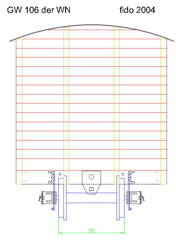 Wer Interesse hat, auch so einen Wagen zu bauen, schaut sich bitte den Wagen genau an und gibt mir bitte Tipps, falls ich Maße verhauen haben sollte. Ich schicke auch gerne die Autocad LT Datei zu. Achja, in der Vorderansicht habe ich die U-Profile des Rahmens eingezeichnet, damit man für den Zusammenbau das Maß abnehmen kann. Es ergibt sich aus den Achslagern und der Breite des Radsatzes.