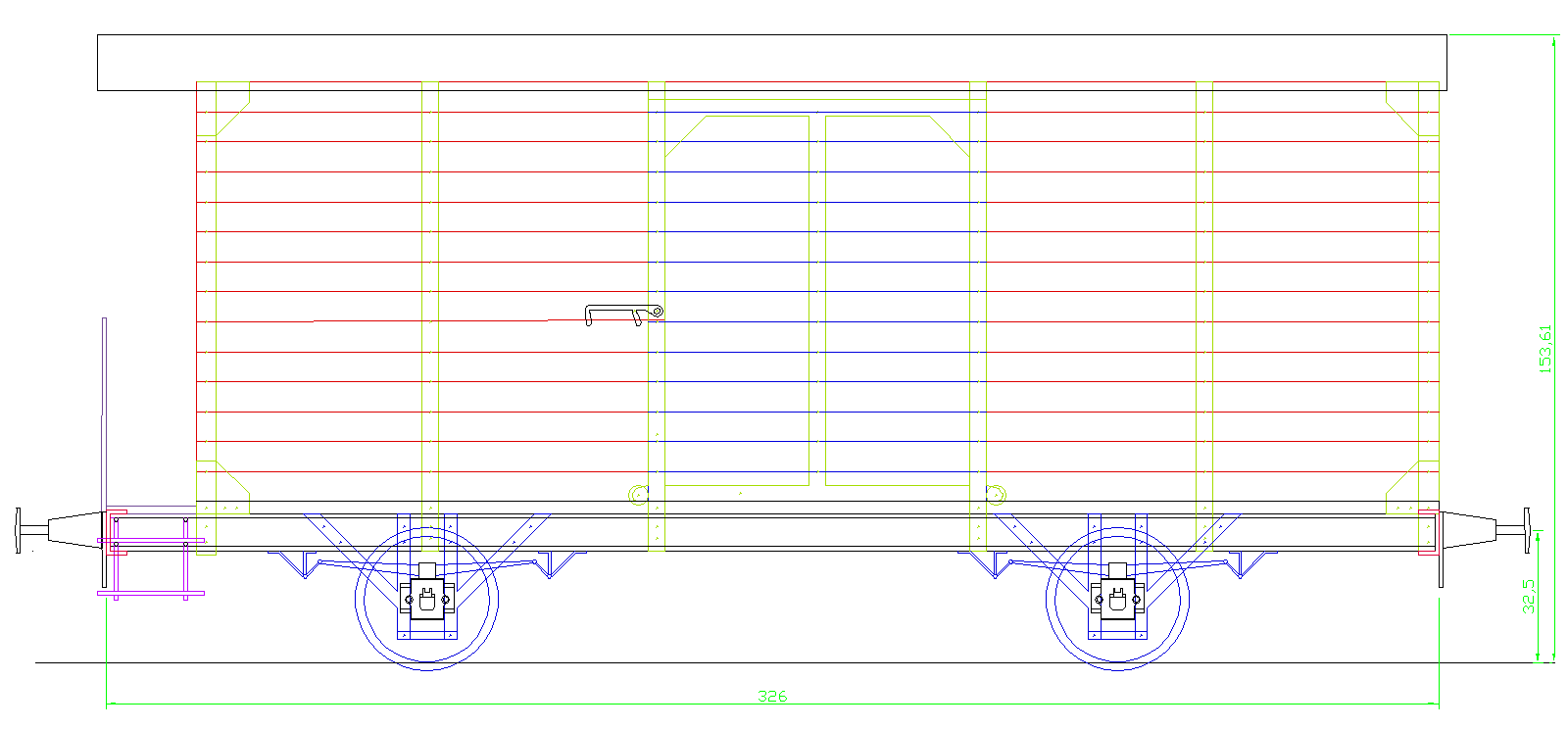 ich will geschlossene Güterwagen der Härtsfeldbahn bauen. Konkret sind das die Wagen aus der Serie WN 106 bis WN 117 mit vier senkrechten Beschlägen pro Seite. Es gab auch Wagen mit sechs senkrechten Beschlägen, aber dafür kann man die Zeichnung leicht abändern. Aus der Zeichnung werde ich später noch den Pufferwagen 106 und 110 ableiten.