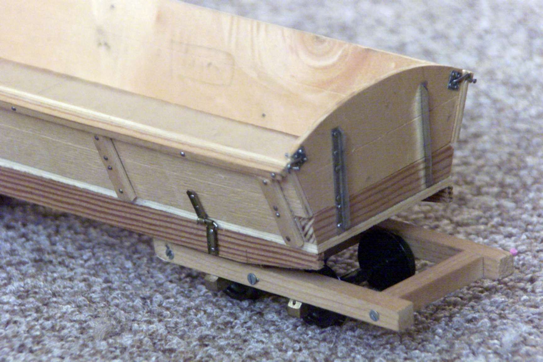 der wagen ist entstanden, weil ich mal einige spur-0-achsen und einen r-600-vollkreis geschenkt bekam. vorbild waren umrechnungen aus dem "land-und forstwirtschaftlichen katalog von o&k".