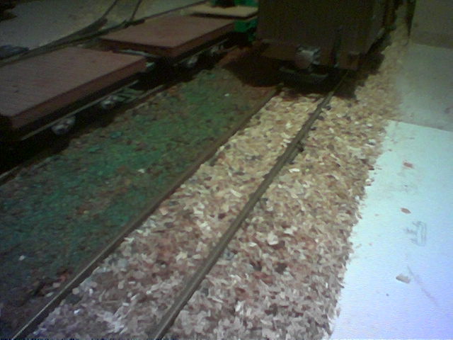 ...im vordergrund die sägespäne, links das war nur nen test mit so nem streuzeugs, ist aber verworfen worden...