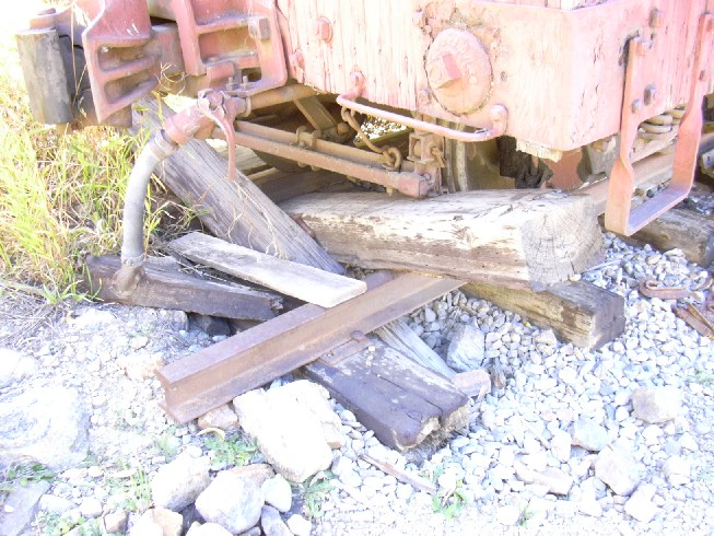 Ich habe Dir hier einen Puffer, welchen ich in Silver Plume in Colorado fotografiert habe bei gelegt. Man sieht diese Puffer auch am Ende der Abstellgeleise im Colorado State Railroad Museum. Mit diesen gekreutzt unter eine Schiene gesteckten und über die andere gelegten Schwellen wurden die Drehgestelle gepuffert und nicht die Kupplung. Gerade bei Schmalspur Wagen muss man bedenken, dass hier keine Stahlträger, sondern Holzbalken die Kräfte aufnehmen.