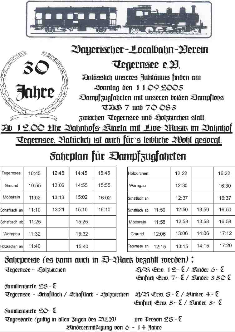 ebenso am 11.9.05 kann man auch wieder in Stadtoldendorf auf der Feldbahn am Mühlenanger fahren. Auch wird Helmut Walter seine bekannte Gipsbahn in 0e aufbauen.