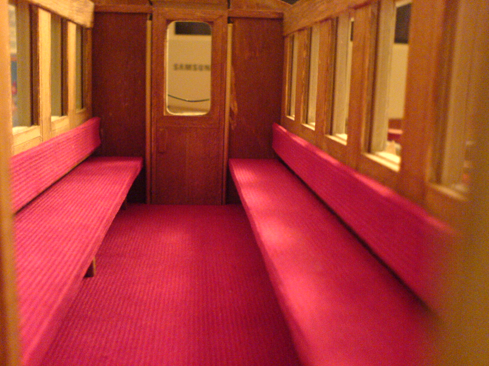 is a six window saloon with balcony ends, and bench seats inside. The