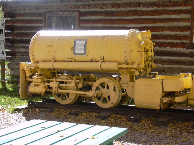 In der Zwischenzeit habe ich auch schon mal was auf dem Denkmalsockel entdeckt. Am Eingang zur Bachelor Tour hinter dem ehemaligen Bahnhof von Creede der Rio Grande steht diese Druckluftlok.