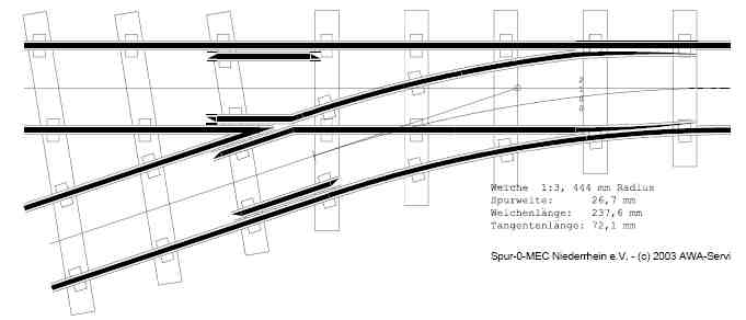 Natürlich kann man die Weichen auch mit normaler CAD-Software konstruieren, aber mit der AWA-Software läßt es sich so schön "probieren", da man Veränderungen in den Vorgaben sofort sehen und ausdrucken kann.