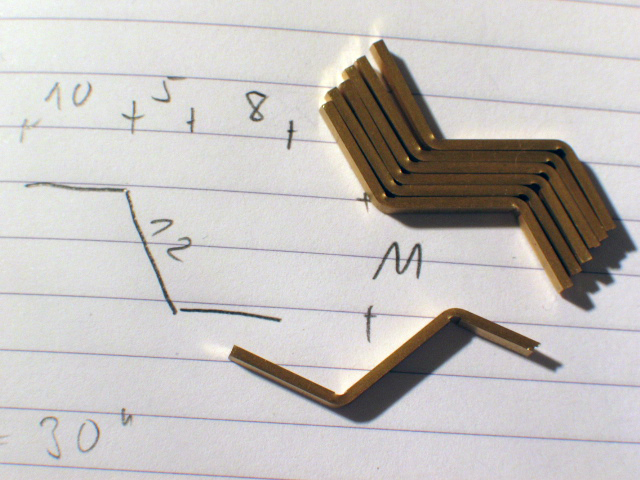 bei meiner derzeitigen abendlichen Beschäftigung stand ich vor der Aufgabe, mehrere möglichst identische Z-Profile aus Messing zu Trittstufenhaltern zu biegen. Die Lösung ist sicherlich nicht neu, aber es kann auch nicht schaden, dies hier zu posten.