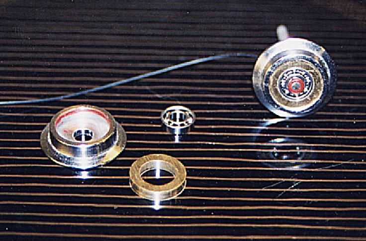 Ich habe keine Vitrine. Meine Modelle fahren alle in den Garten. Deshalb ist auch das technische Tuning angesagt. Die Lok soll ja über das stromlose Plastikweichenherz hinweg fahren können. Die Schleppachse habe ich deshalb mit einem Metallrad ausgerüstet in das ich ein Kugellager eingebaut habe. So nimmt diese auch Strom auf.
