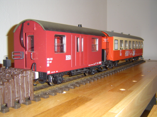 für diejenigen die es interessiert: Nach Auskunft von Herrn Meyer liegt der Preis für einen sechsfenstrigen sowie achtfenstrigen Wagen bei 250 Euro. Im Verhältnis zu den von Franks Gartenbahnen angeboten, aus überwiegend LGB-Teilen zusammengesetzten HSB Wagen à 448 Euro ein annehmbarer Preis. Zumal ich davon ausgehe, dass die Kiss-Modelle erheblich vorbildgerechter (wohl keine LGB-Anbauteile) wirken werden.