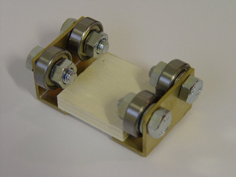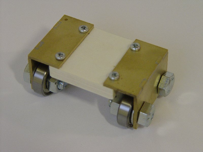 Das das Holz oben ist und nicht unten auf der Schiene ist einem Konstruktionsfehler bei der Planung meinerseits zu verdanken (Entschuldigung), da habe ich mal ein wenig zu wenig überlegt. Macht aber nix, der Rollenprüfstand ist trotzdem gut zu gebrauchen.