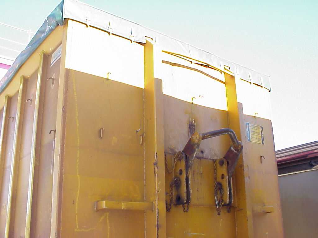 Es handelt sich dabei um Abroll-Container nach DIN 30722. Details dazu findest du in der nachstehenden Skizze (Norm-Vorgaben) bzw. im Beispiel-Link. Dazu auch jede Menge Informationen im Internet, Stichwort ACTS oder Abrollcontainer.