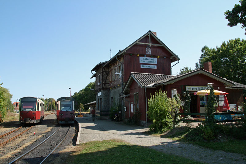 Am ersten "richtigen" Tag im Harz ging es aber erstmal mit einem Reisebus nach Quedlinburg an den Bahnhof. Von dort aus fand eine sehr gut geplante und durchgeführte (Foto-)Fahrt mit dem Triebwagen 187 015-3, gebaut in Wittenberge (1.Teil des Rätsels) über Gernrode, Harzgerode, Stiege (Kehrschleife, 2. Teil des Rätsels), Eisfelder Talmühle und Elend nach Wernigerode.
