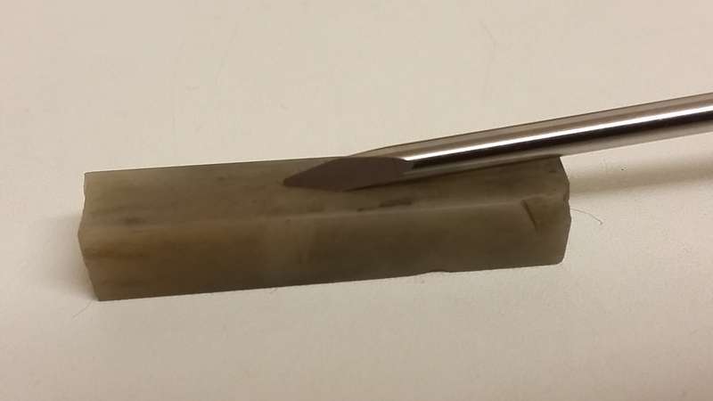 ihn mit Schleifleinen auf 3,98 mm. Danach härten ( in Wasser abgeschreckt).