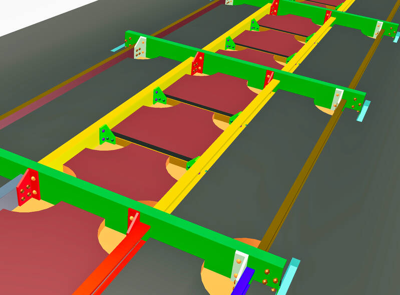 Um die Lang- und Querträger der bewegliche Hauptbrücke zu montieren,