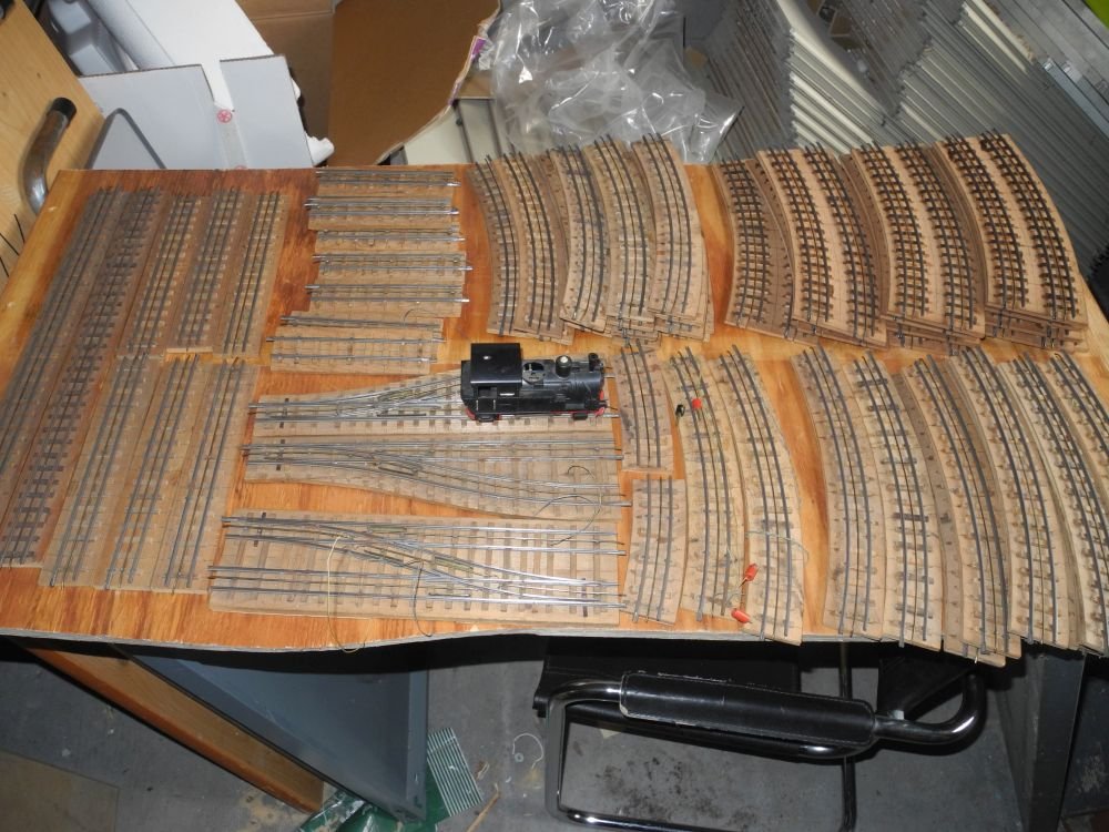 Ich wollte mal eine Feldbahnanlage (nach Entfernen des Mittelleiters) daraus machen, aber dann kam der Fünfzollechtdampfkohlegefeuertvirus. der alles Andere in strikte Quarantäne steckte. So schläft das Ganze im Werkstattkeller, bis mal jemand eine zündende Idee hat.