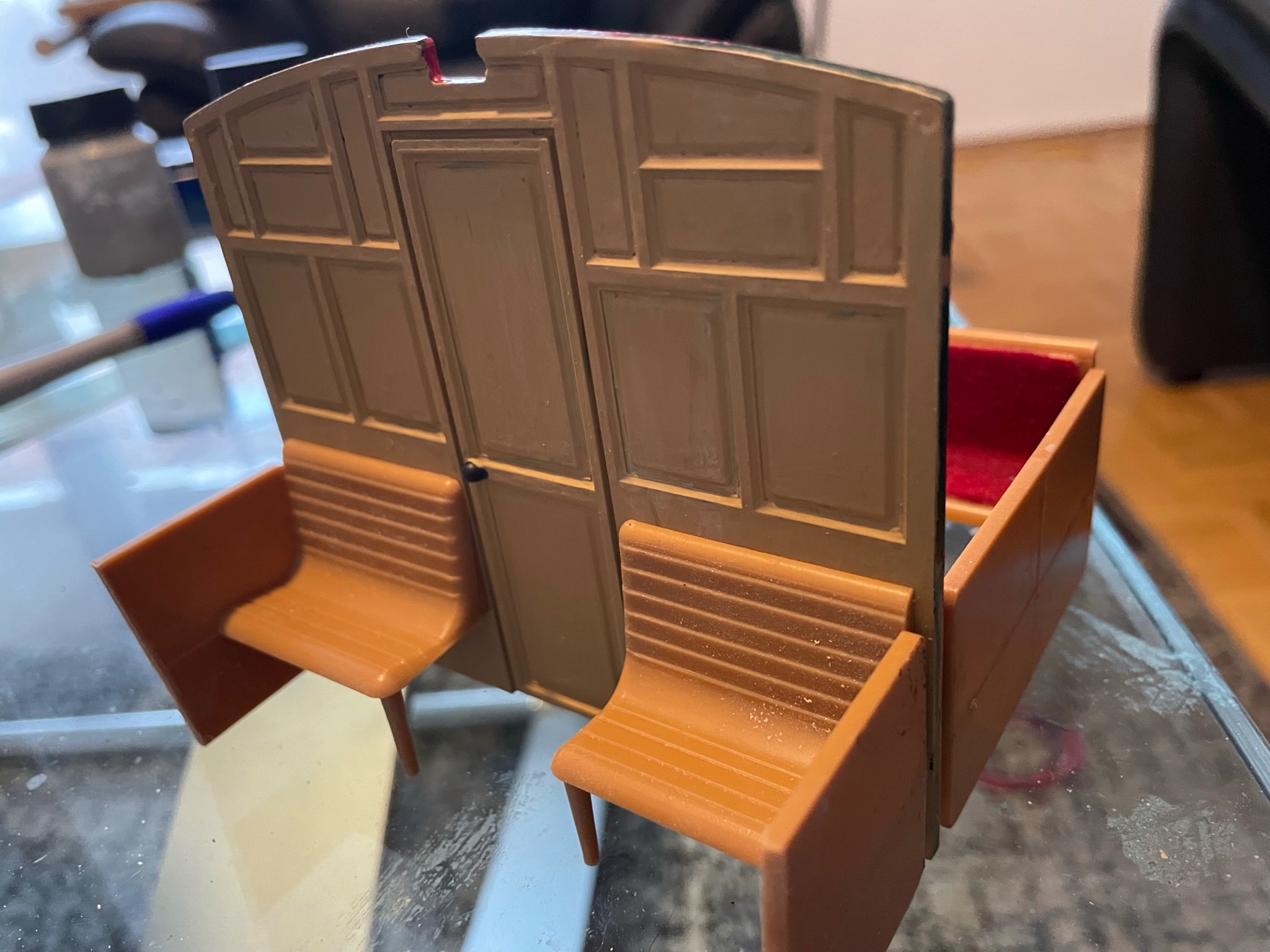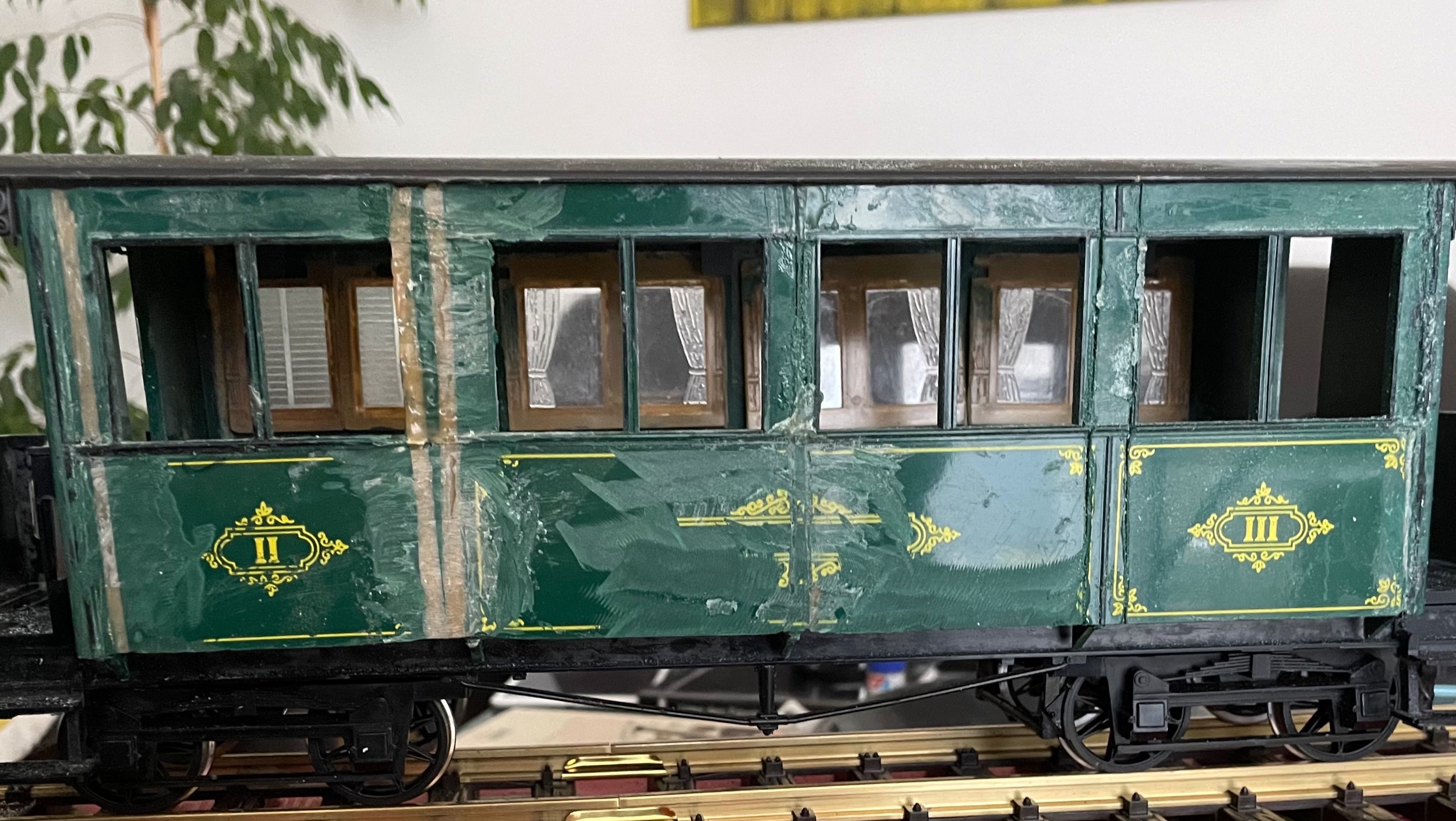 Als nächstes werde ich den Aufbau trennen und mit den richtigen Fensterabständen (das 2. Klasse-Abteil ist etwas breiter) wieder zusammenkleben.