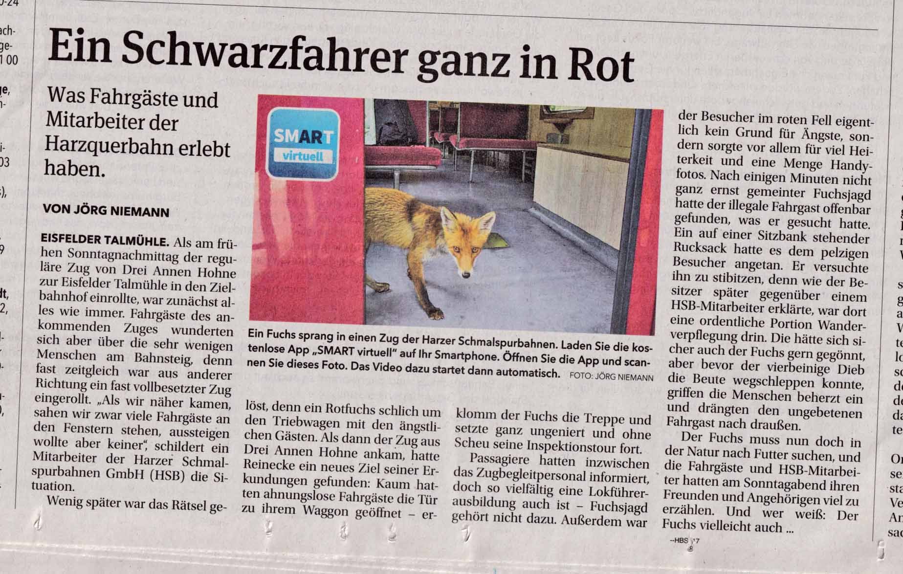 und wenn die HSB nach 7 oder mehr Jahren es immer noch nicht schafft den Fuchstriebwagen nach einer (Kaputt) -Restauration auf die Gleise zu stellen, dann hat wenigstens die Tierwelt für einen Fuchs gesorgt.