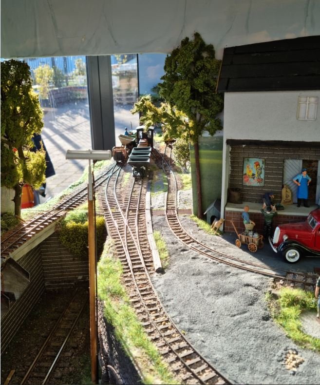 Die Anlage im aufgebauten Zustand Eingangsbereich des Lokschuppen ( sehr schöne Lokalität ) .
