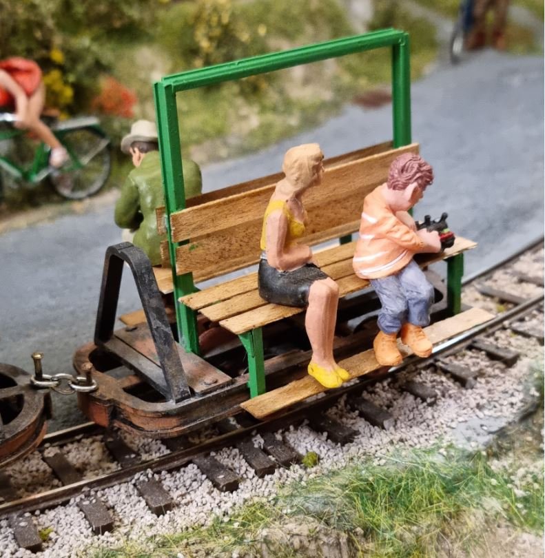 Als nächste wurde ein Personenwagen gebaut . Das Modell ist von Ur-Models ein Decauville Truppentransportwagen , dieser wurde in den Weltkriegen dazu benutzt um in Bunkerwerke der Maginot Linie einzufahren . Jetzt wurde dieser friedlichen Nutzen zugeführt , Der Wagen soll als Wagen für die Gleisbauer dienen . Da der Wagen eigentlich ein Resin Standmodell ist wurde wieder das Fahrwerk umgebaut . Die Radlager wurden aufgebohrt und Messinghülsen eingesetzt , damit die Achsen besser laufen . Der Aufbau wurde gebaut , lackiert und gealtert .