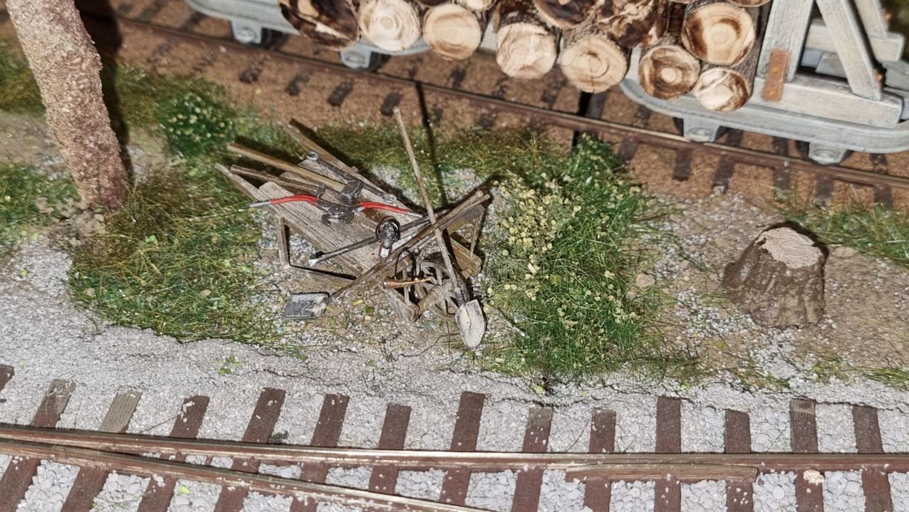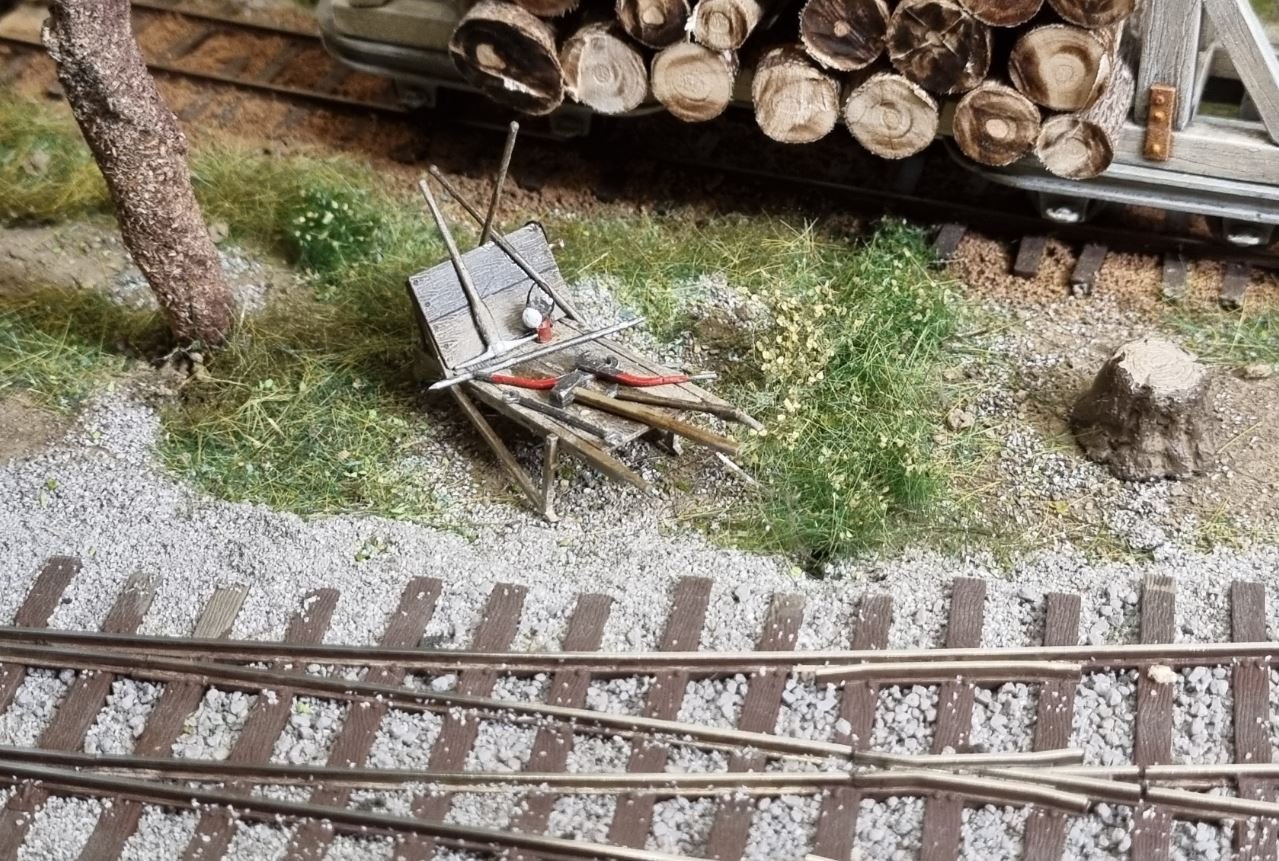 mal ein kleines Update , kurz einmal meine Gleisbau Schubkarren vorstellen . Nix besonderes der Bausatz ist von Miniart , wurde gebaut und mit verschiedenen Maltechniken gealtert . Das Warnhorn hat einen Griff und die Handlampe hat einen Schnur zum Umhängen bekommen . Die Werkzeuge wurden auf und an der Schubkarre platziert als , wenn die Kollegen von Gleisbau gerade eine Pause machen würden .