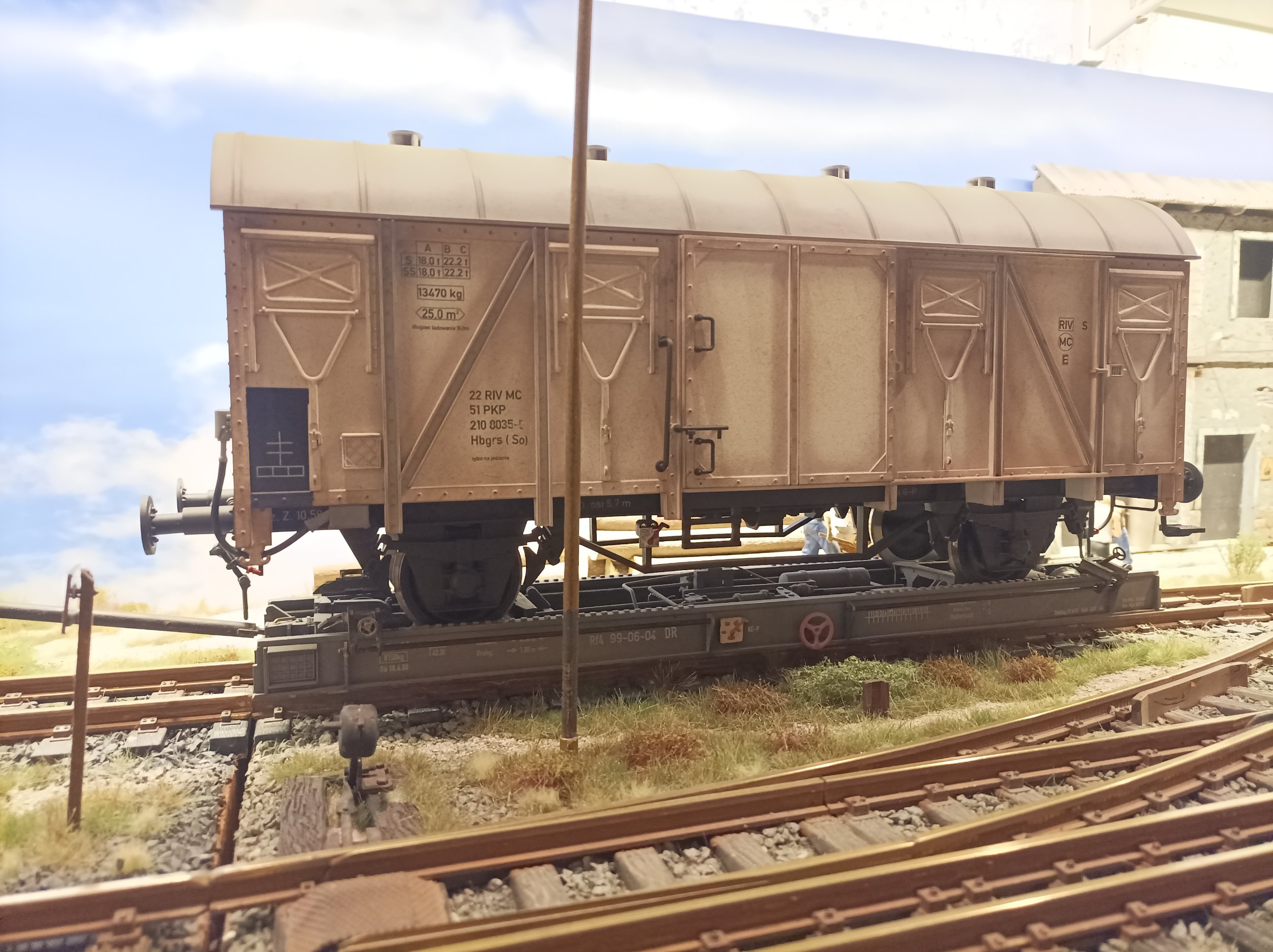 hier zeige ich euch den Prototypen einer geplanten Kleinstserie eines Isolierkühlwagens der PKP Epoche IV auf Basis des Gbs- Wagen der Fa. Boermann.