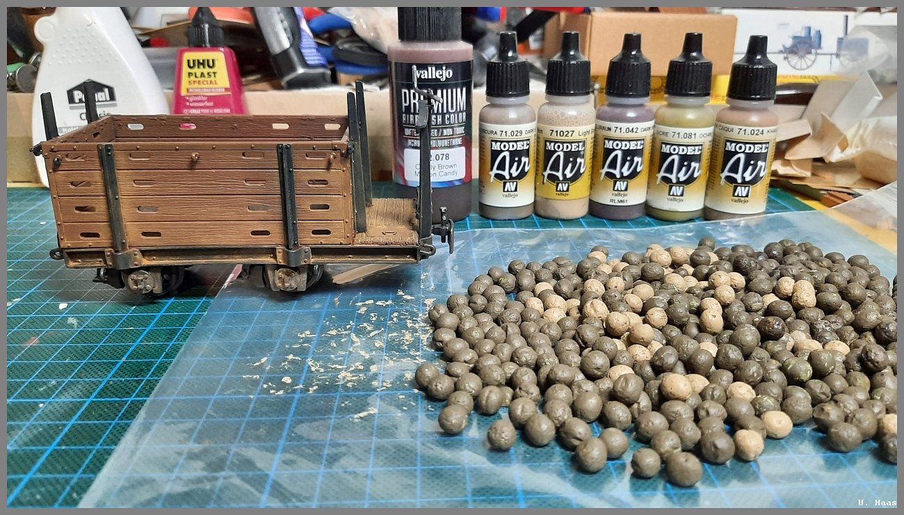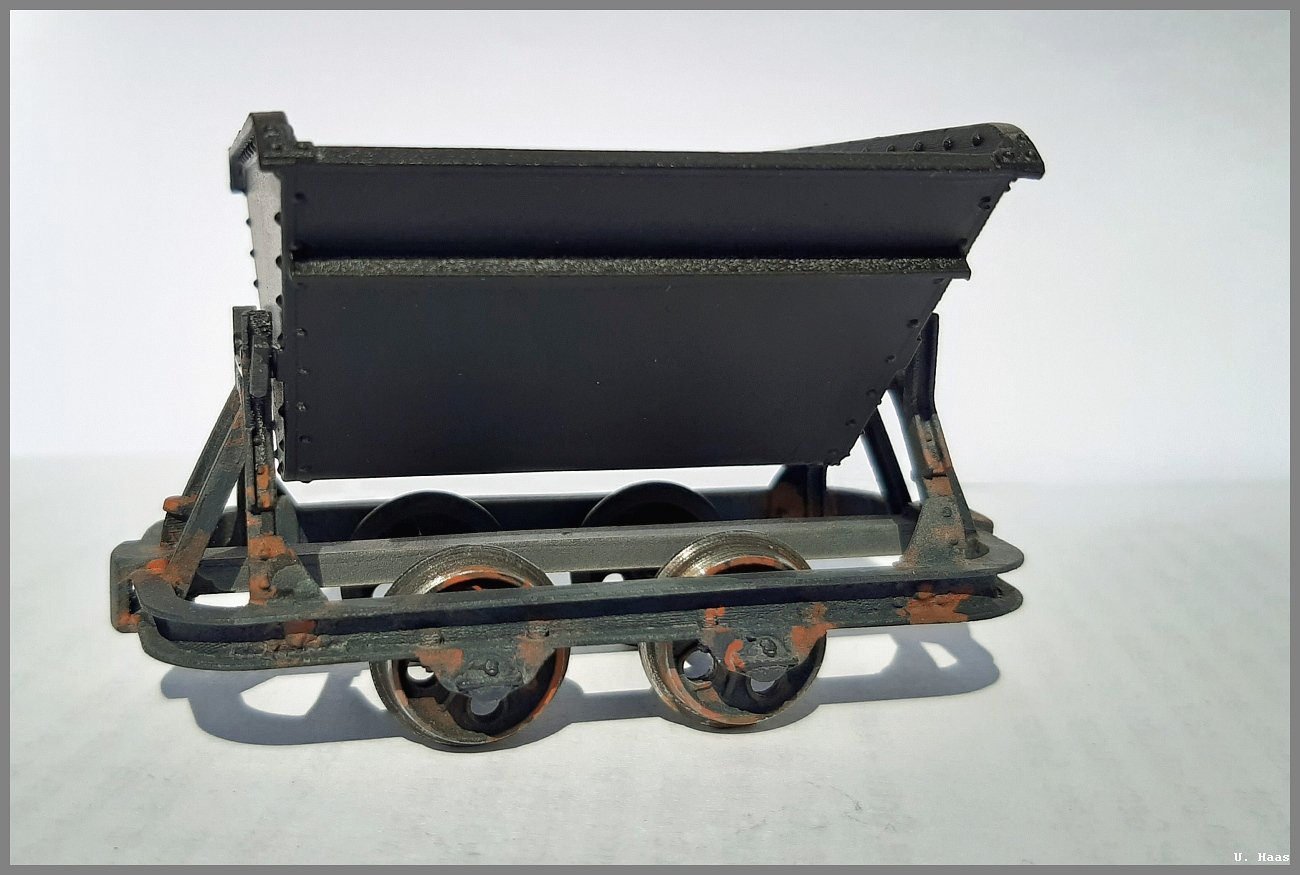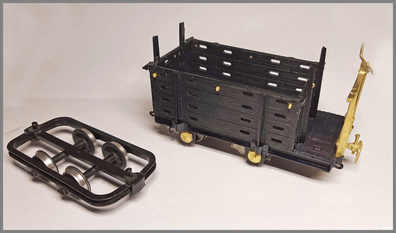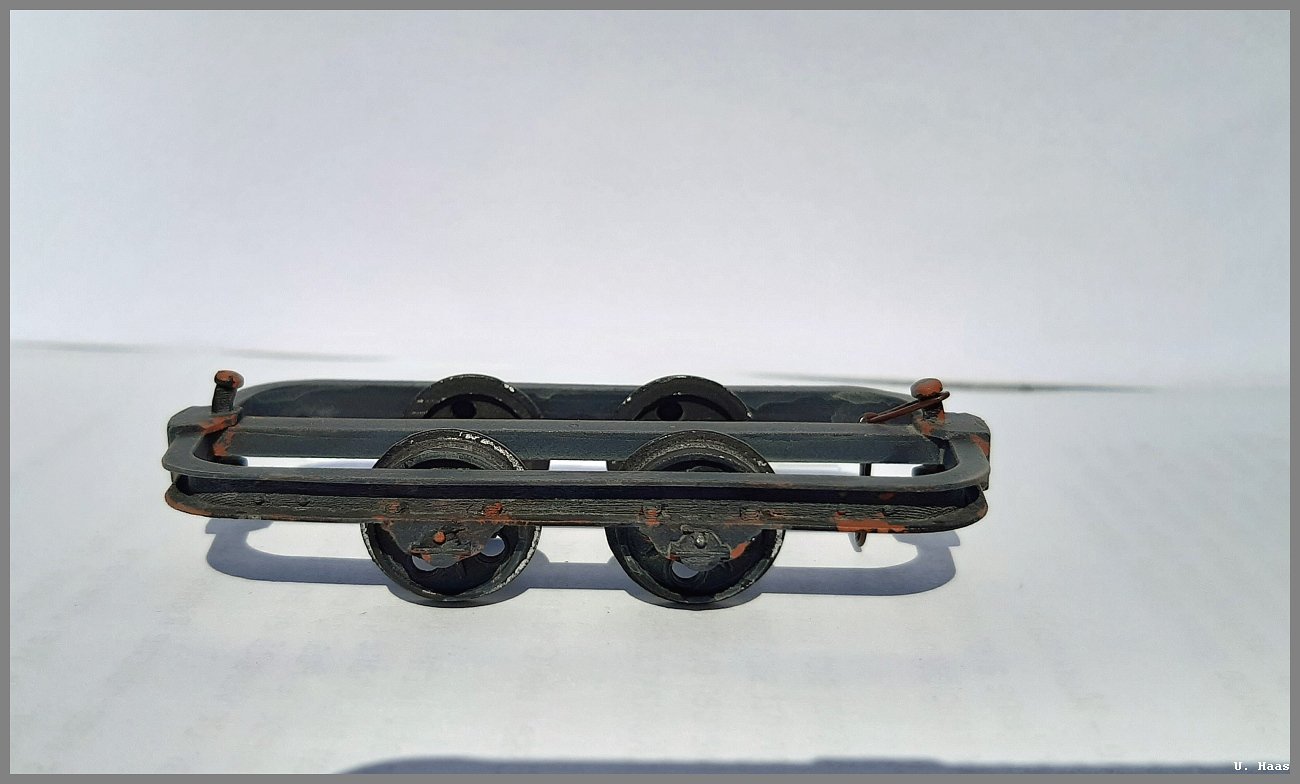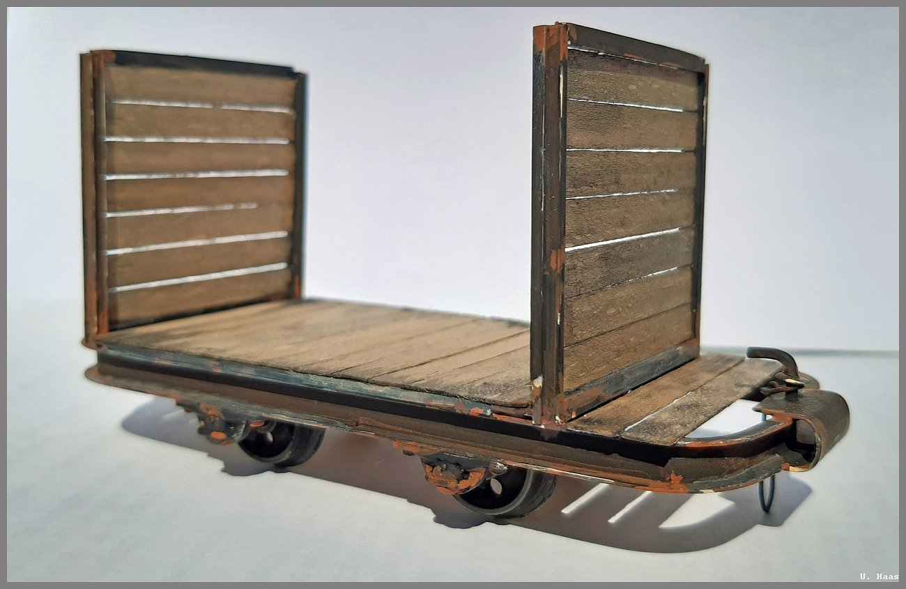 nach den Kisten wollte ich mich an Fahrzeugen versuchen. Bei Baumann bekam ich Lorenrahmen und habe etwas darauf los gebastelt.