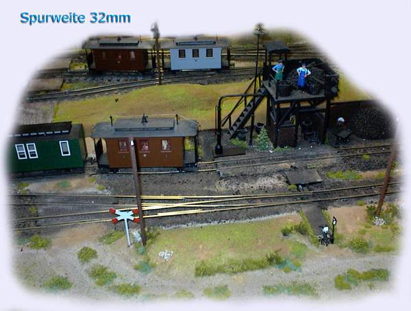 Bei unserem Gartenbahn- Saaltreffen in Zorge war eine größere 32mm- Anlage aufgebaut, ein bischen ist auf den Bildern "zorgebild 10" und "zorgebild 12" hier zu sehen: http://www.thomas-uhlendorf.de/zorge/zorge.htm