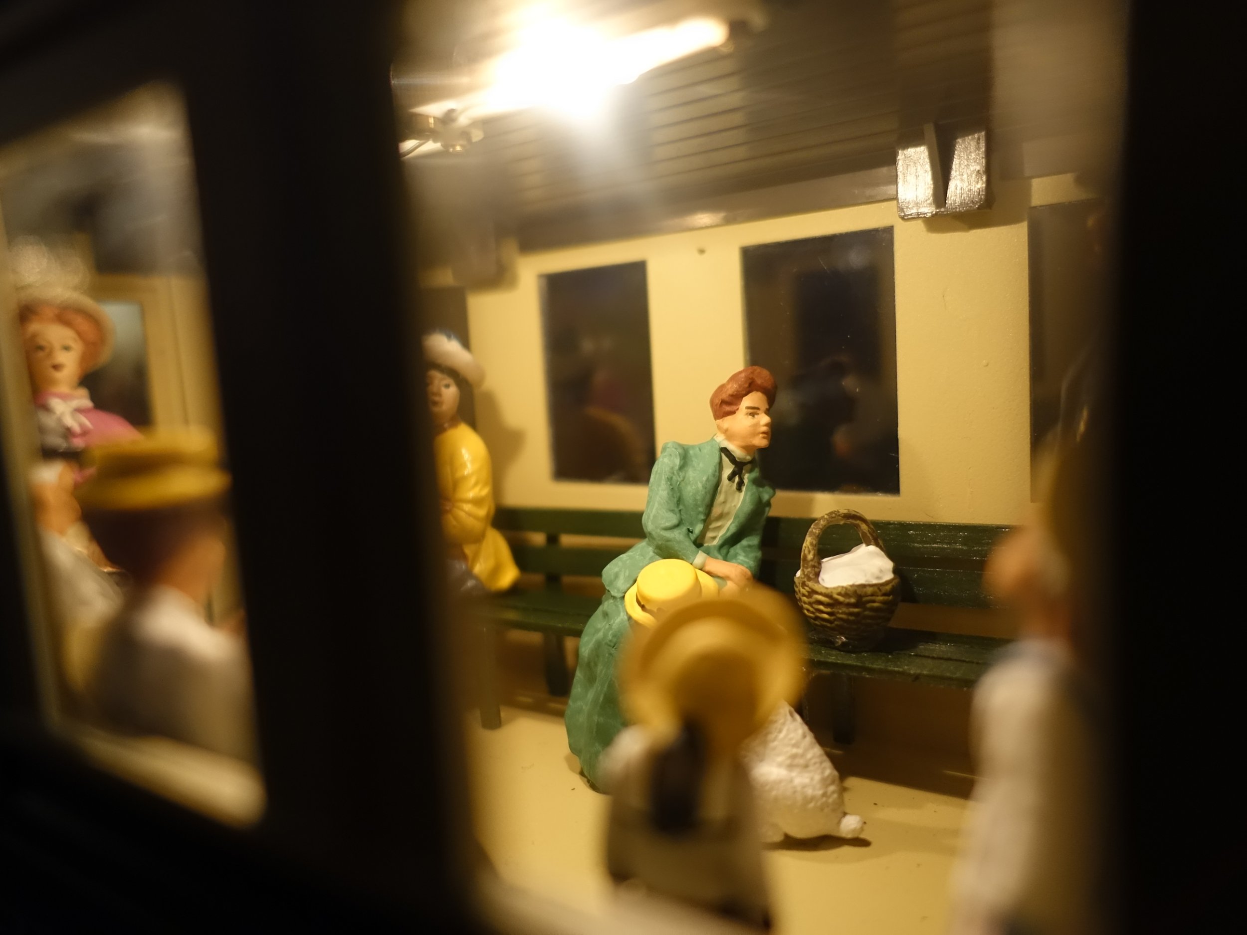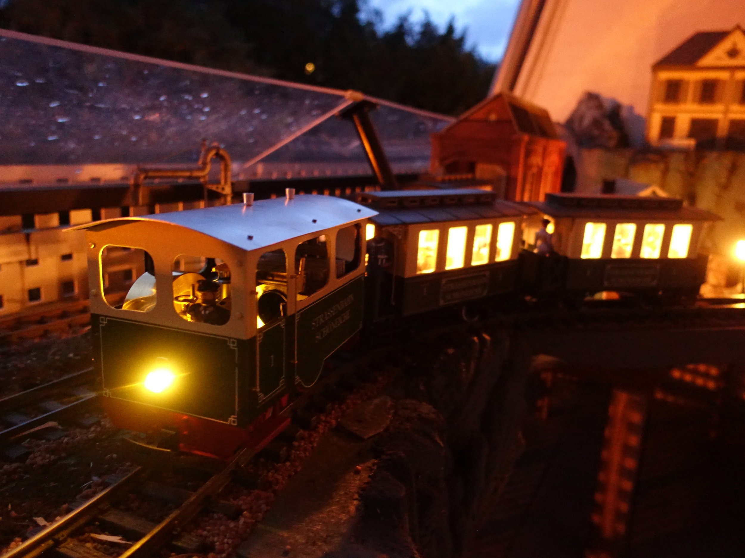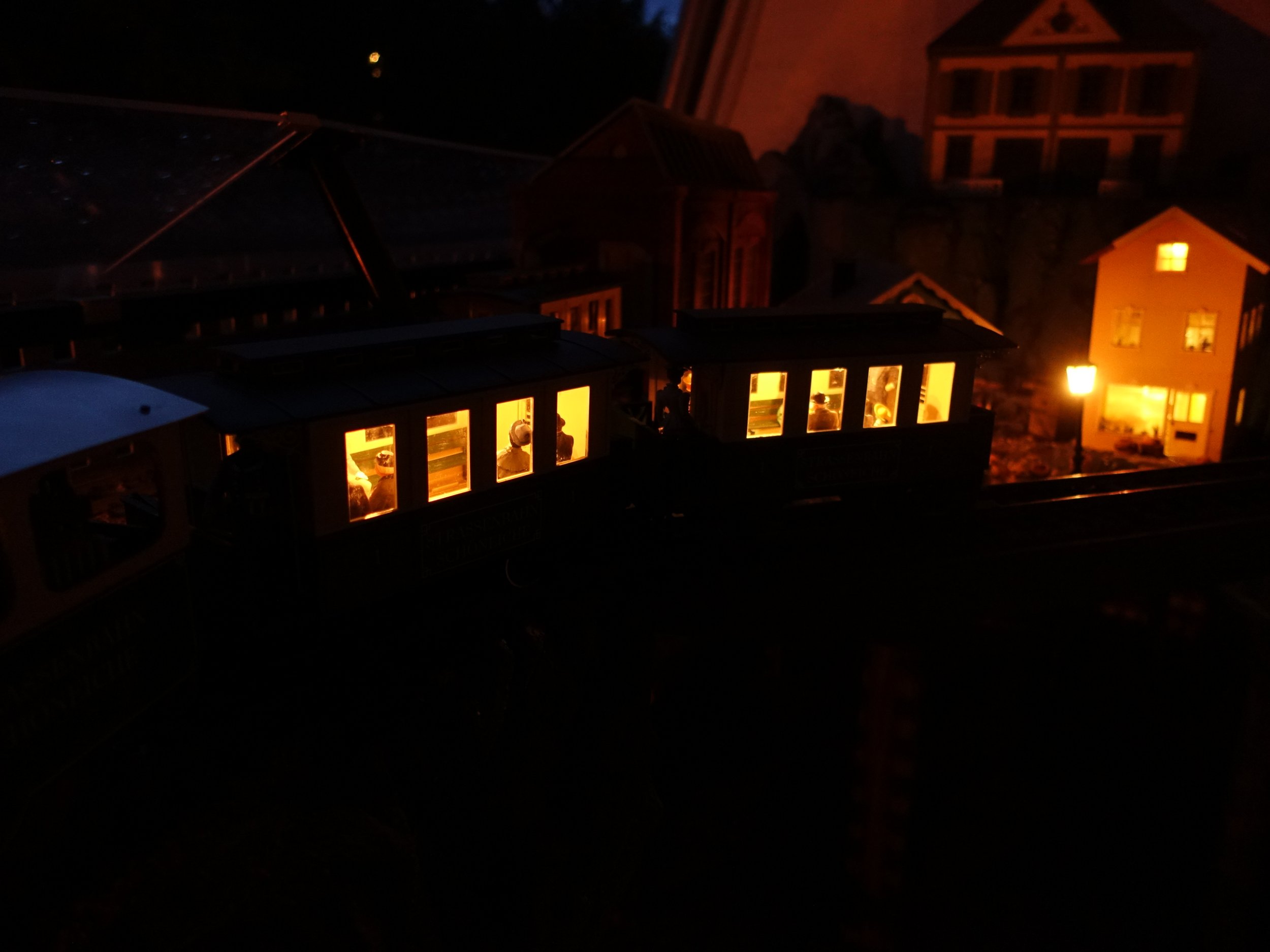 Für die Beleuchtung wurden 2 in Serie geschaltete Röhrenglühlampen mit Reflektoren (alles FGB) auf die Dachinnenseite verschraubt. Im Ergebnis werden die Wagen für viele Stunden schön warmweiß ausgeleuchtet.
