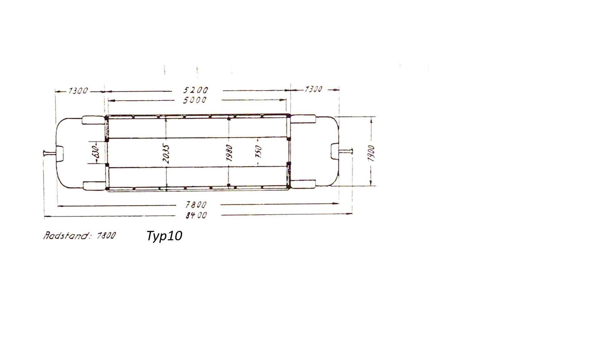 keine Heizung, Längsbänke, (Innenmaße und Aufsicht s. Typ 10, der einen ähnlichen Aufbau wie Typ 7a gehabt haben soll).