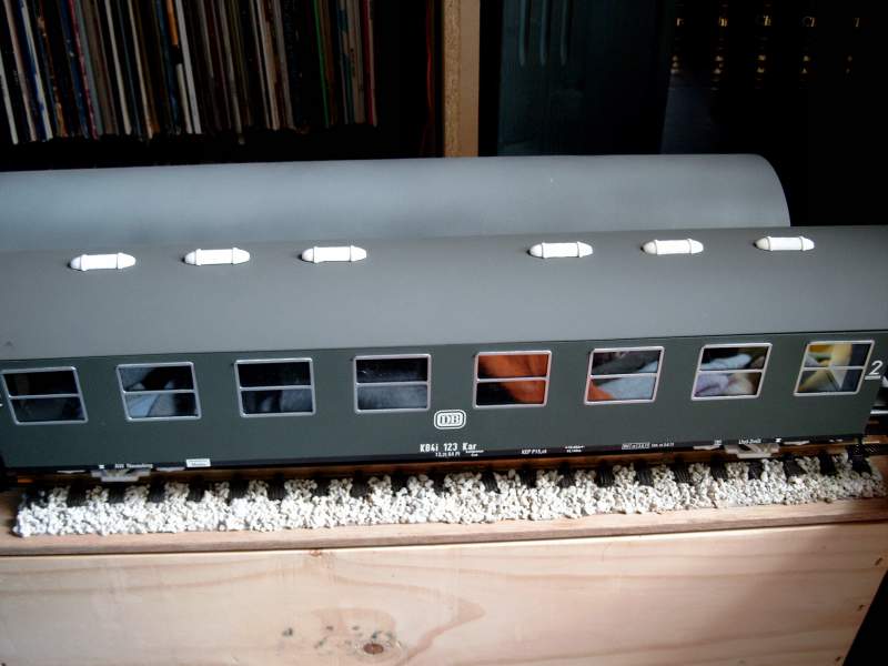 Hallo Buntbahners! Ich hatte mal wieder Zeit, ein wenig an meinem KB4i zu bauen und konnte die Inneneinrichtung einbauen. Die Drehgestelle habe ich immer noch nicht lackiert, da diese derzeit neu entstehen. So langsam komme ich dem Ende entgegen. Wenn dieses Model dann endlich fertig ist und einwandfrei über die Gleise läuft, werde ich den kompletten Zug bestehend aus 4 Wagen und einem Halbpackwagen angehen, wovon ich dann natürlich regelmässig berichten werde, falls 's von Interesse ist... :D :wink: