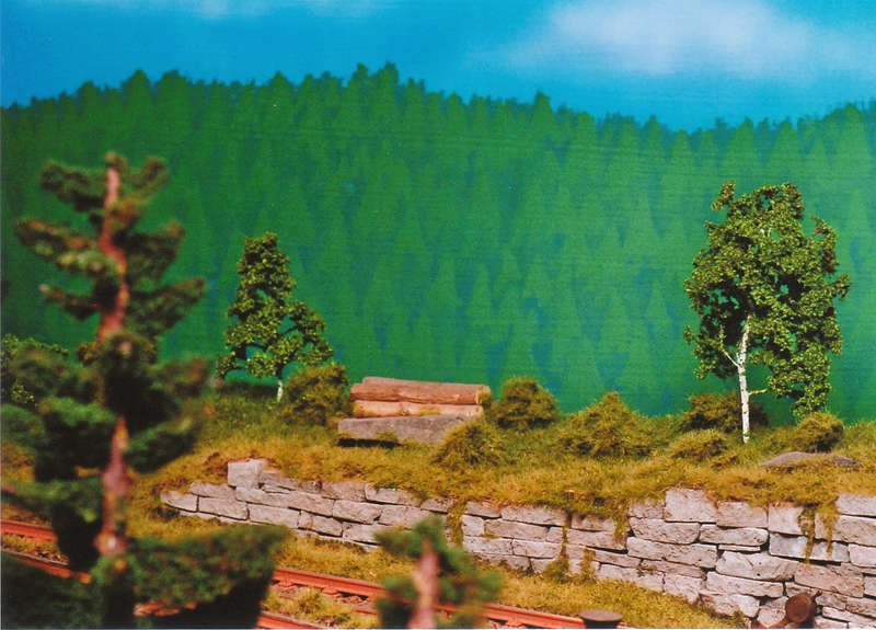 was in der Kombination: kleine Birken, mit Büschen auf den ´gerodeten´ Flächen, mit den Kiefern gegenüber vor dem Hintergrundteil und dem Streckenverlauf doch ganz gut paßt, oder ?: